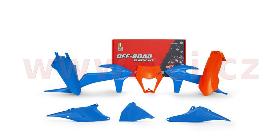 SADA PLASTŮ KTM, RTECH (ORANŽOVO-MODRÁ, 6 DÍLŮ, VČ. L KRYTU VZDUCH FILTRU)