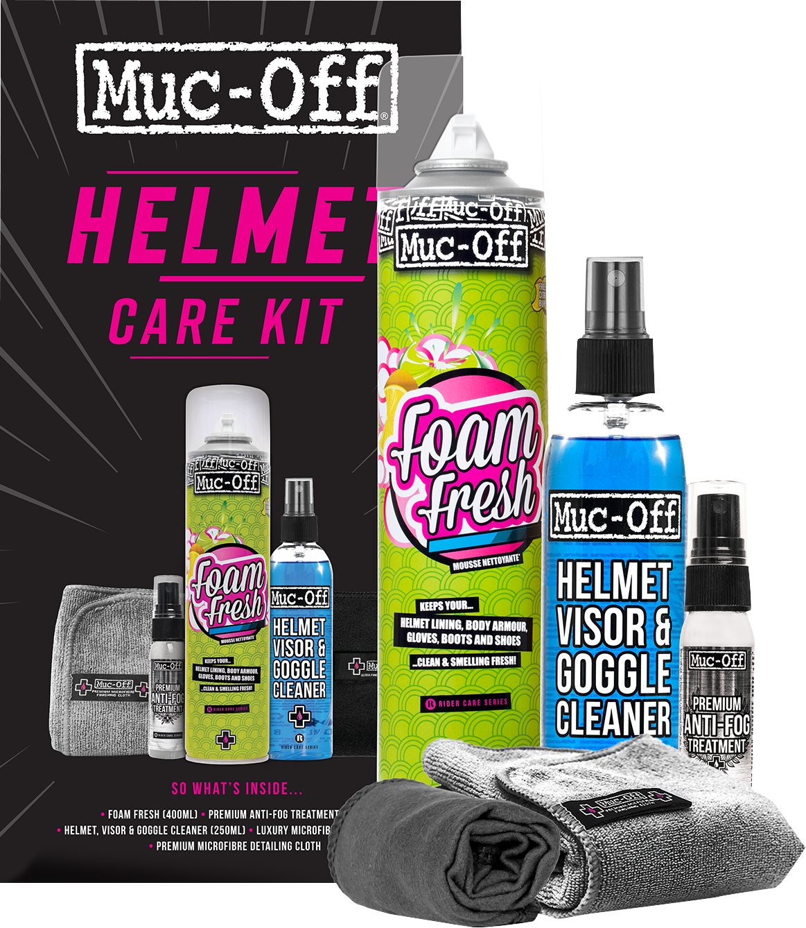 a Sada pro čištění a ošetření přilby MUC-OFF HELMET CARE KIT