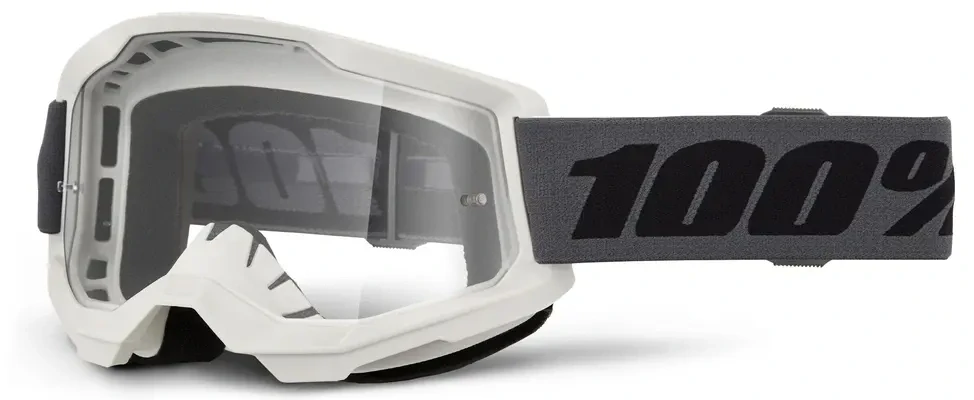 - A Motokrosové brýle 100% STRATA 2 ŠEDÉ s čirým objektivem