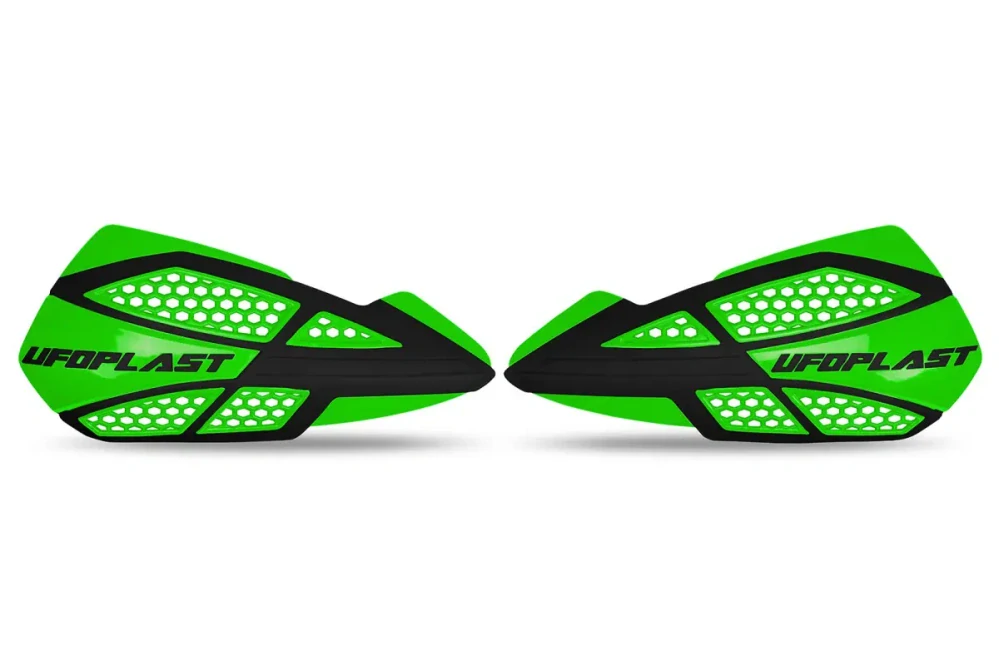 - A Odolné kryty páček motocyklu / chrániče rukou UFO VOYAGER HANDGUARDS barva zelená-černá pár / bez montážní sady