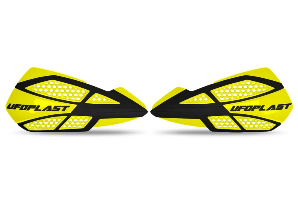 - Odolné kryty páček motocyklu / chrániče rukou UFO VOYAGER HANDGUARDS žlutá-černá pár / bez montážní sady