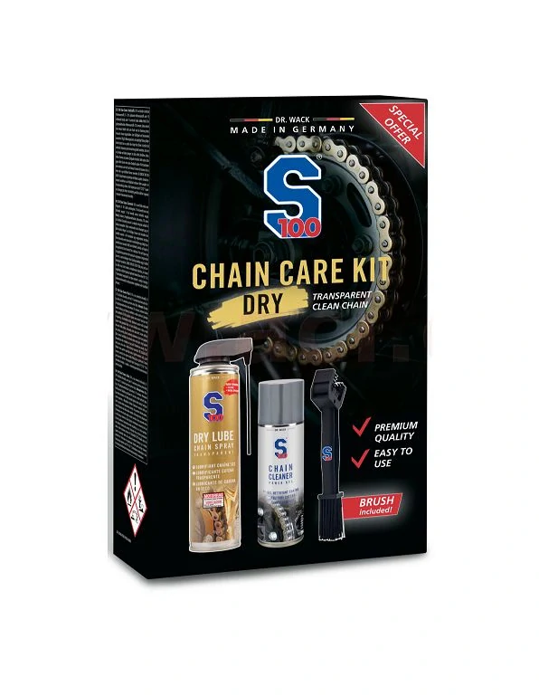 S100 sada péče o řetěz (Dry Lube) – kompletní údržba v jednom balení